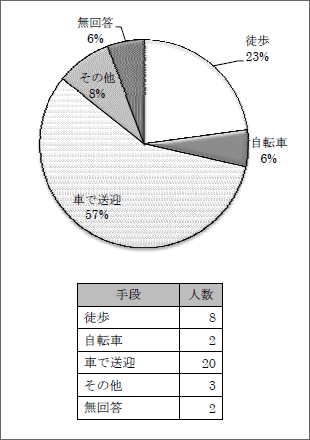- ■半数以上が車で送迎されている。よって、児童が川での体験をしようとすると、大人の協力が必要である。