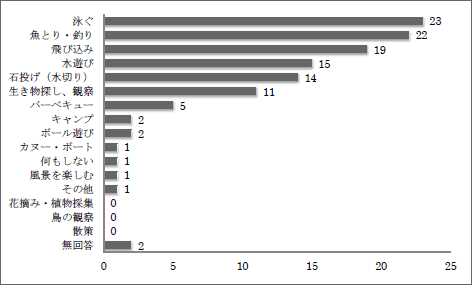 - 質問5(夏期川へ行った人のみ回答):川での遊び(複数回答)