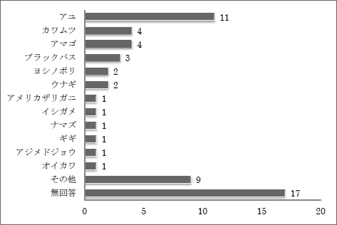 - 質問7(夏期川へ行った人かつ魚を採った人のみ回答):採った魚の種類(複数回答)